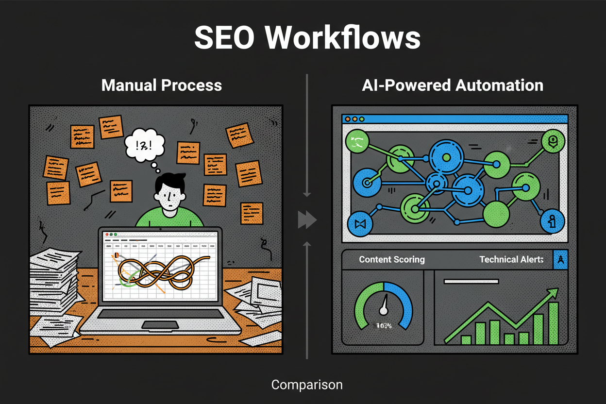 They were juggling keyword research in spreadsheets, copying SERP data into briefs, and manually grading content against competitors. Technical checks lived in a separate crawler export. Monthly reporting took three days and stole time from strategy. Sound familiar?